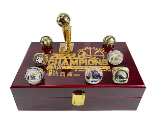GOLDEN STATE WARRIORS 7-Ring NBA CHAMPIONSHIP SET TROPHY & WOOD BOX STEPH CURRY